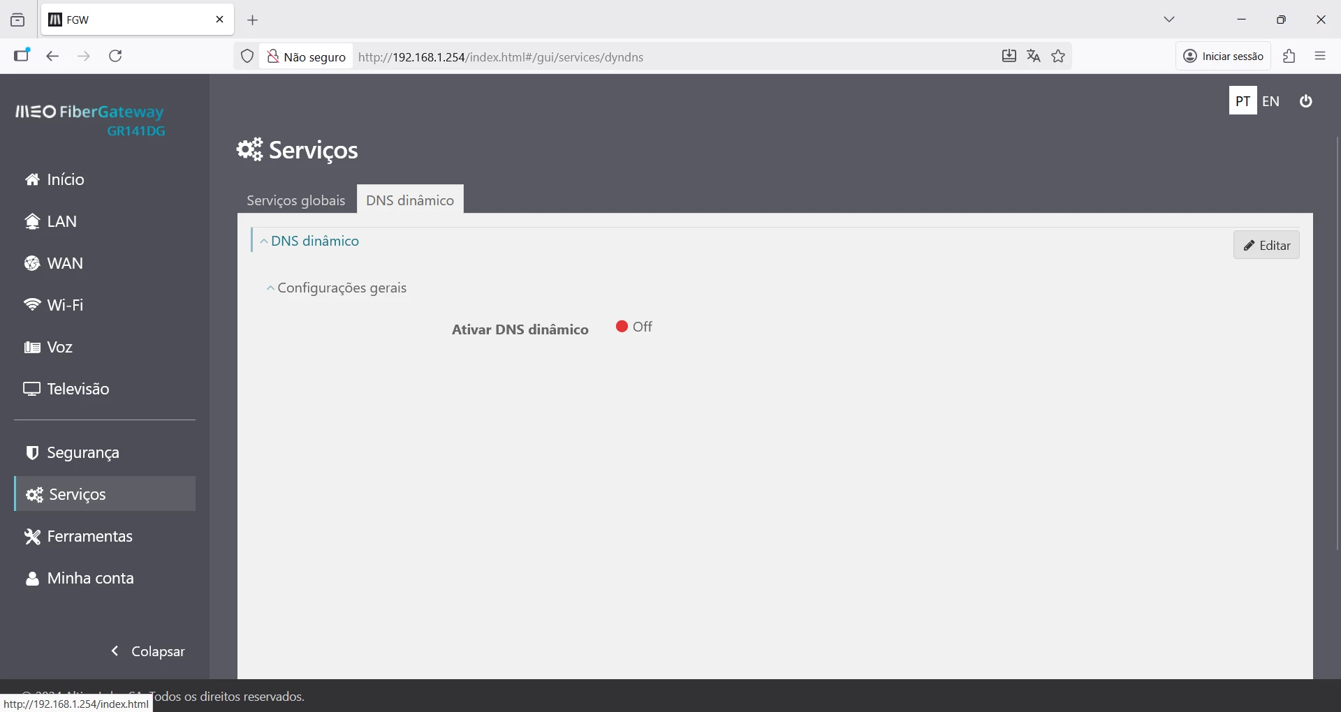 Alguém pode fazer o favor de informar se por defeito “ Ativar DNS dinâmico “ se encontra OFF.