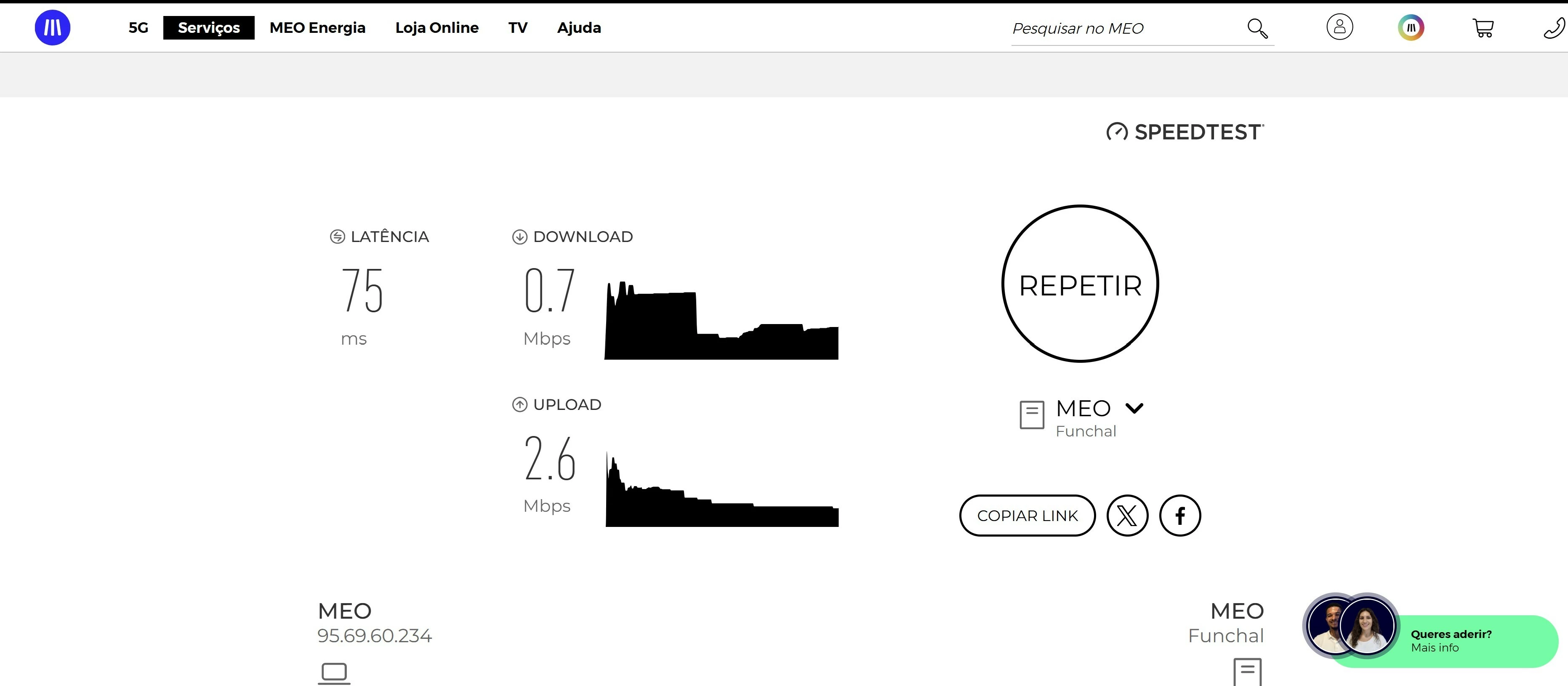 Os tecnicos vêm e fico com internet com 60MBps uma hora depois de saires já está a 30MBps e continua sempre a velocidade a deminuir até estar como hoje: 0,7MBps.