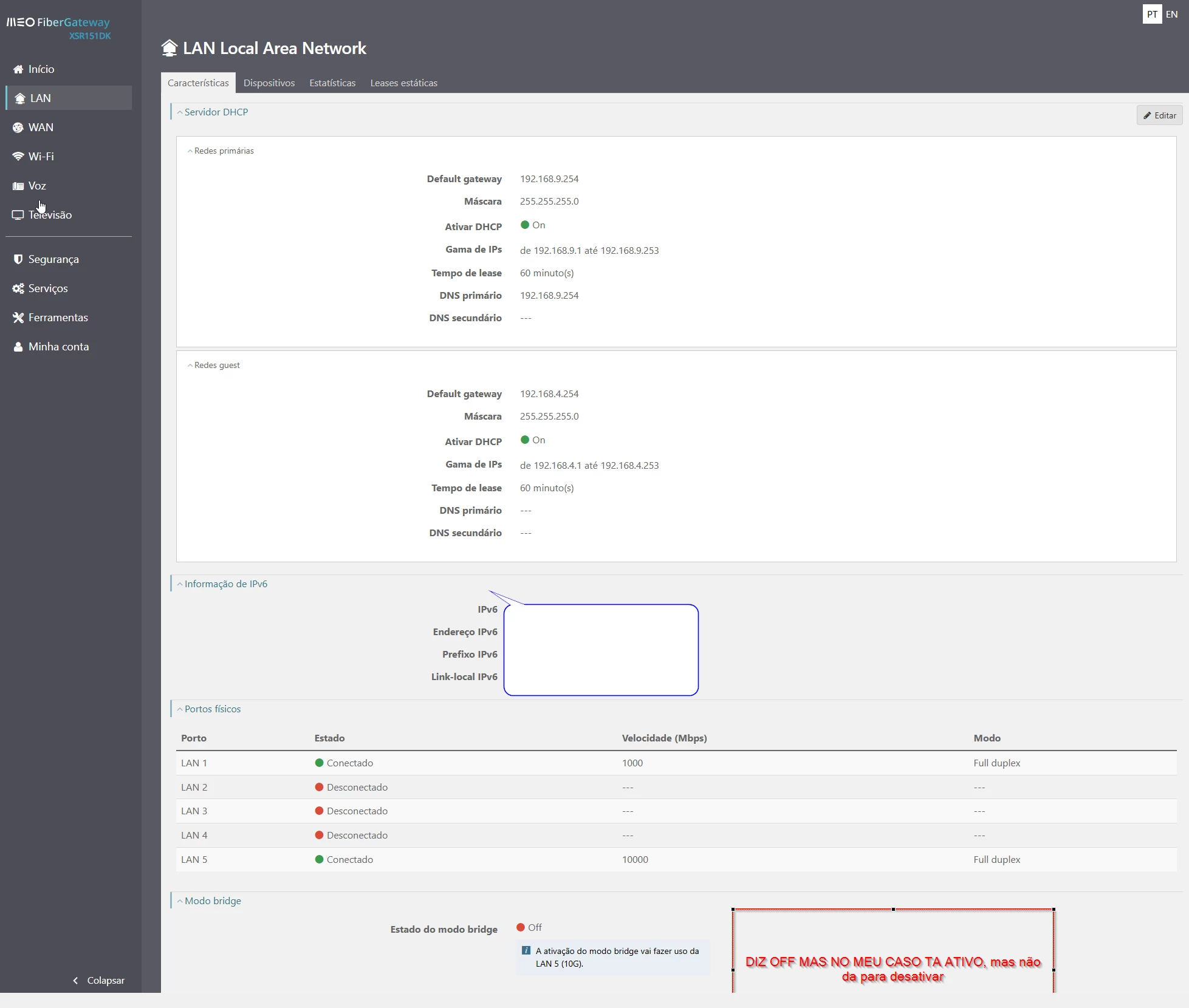 A meo em toda a sua gloria lança um firmware que ate melhorou o interface, mas nota-se que fez 0 testes, ha dezenas de pessoas a queixar-se de portas e encaminhamento das mesmas deixaram de funcionar, No caso Fiber X corrigiram a nota para o Bridge dizendo que é na porta 5 (10Gb) mas já não é possivel activar ou desativar, (no meu caso esta activo porque era a definição que tinha uso os meus equipamentos.