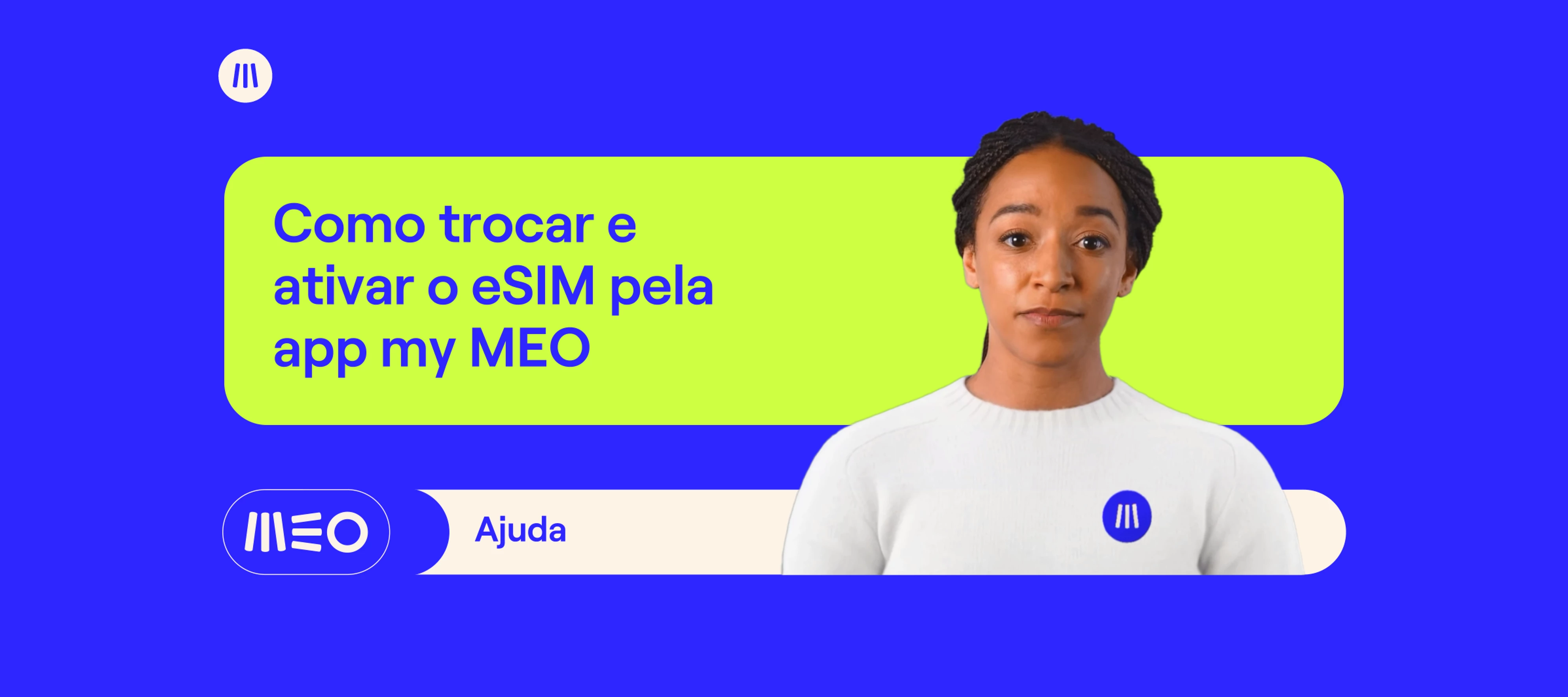 Neste vídeo, a Rita, um avatar digital do MEO, explica-lhe como trocar e ativar o eSIM de forma automática: