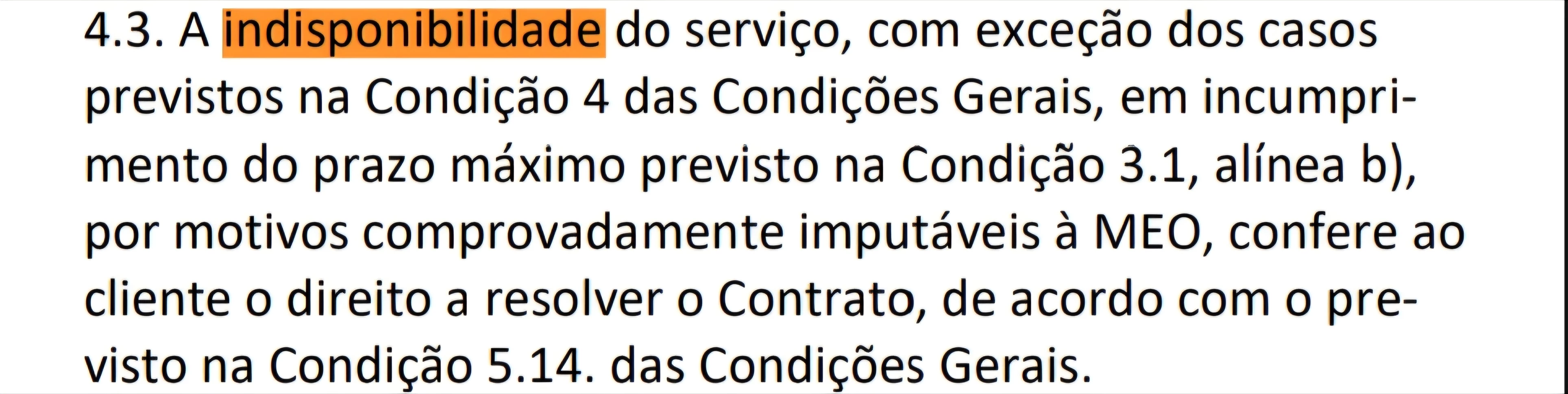 Mas indica também que tem o direito quando é "por motivos comprovodamente imputáveis à MEO", ou seja como a Indisponibilidade do Serviço Ainda não foi Resolvido por Motivos Alheios a MEO, e Justificáveis pela Mesma, sendo uma ocorrência de situações de força maior de situações de natureza extraordinária/imprevisível, e um processo demorado devido ao imenso número de estragos, poderão assim não lhe dar assim esse Direito.... Como até pode se Conseguir Justificar que a Culpa é da Marca
