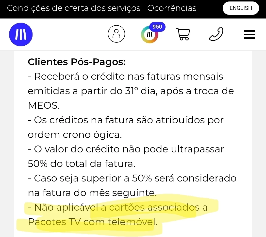Não é Possível Trocar MEOS por Descontos para a sua Fatura Mensal