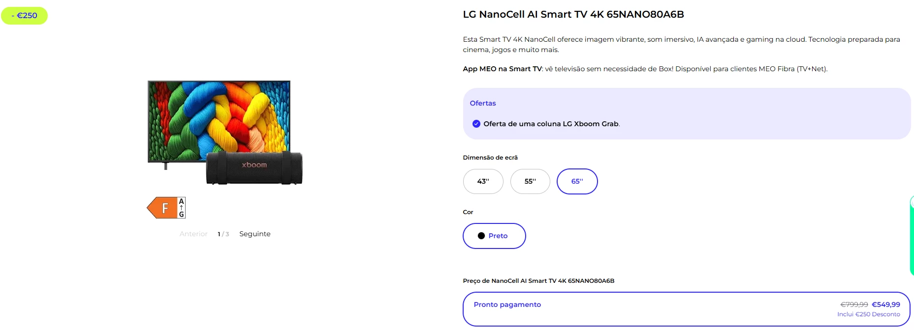Fiz uma encomenda de uma Smart TV LG e no site indicava que ofereciam uma coluna da LG. A TV chegou, mas a coluna não.