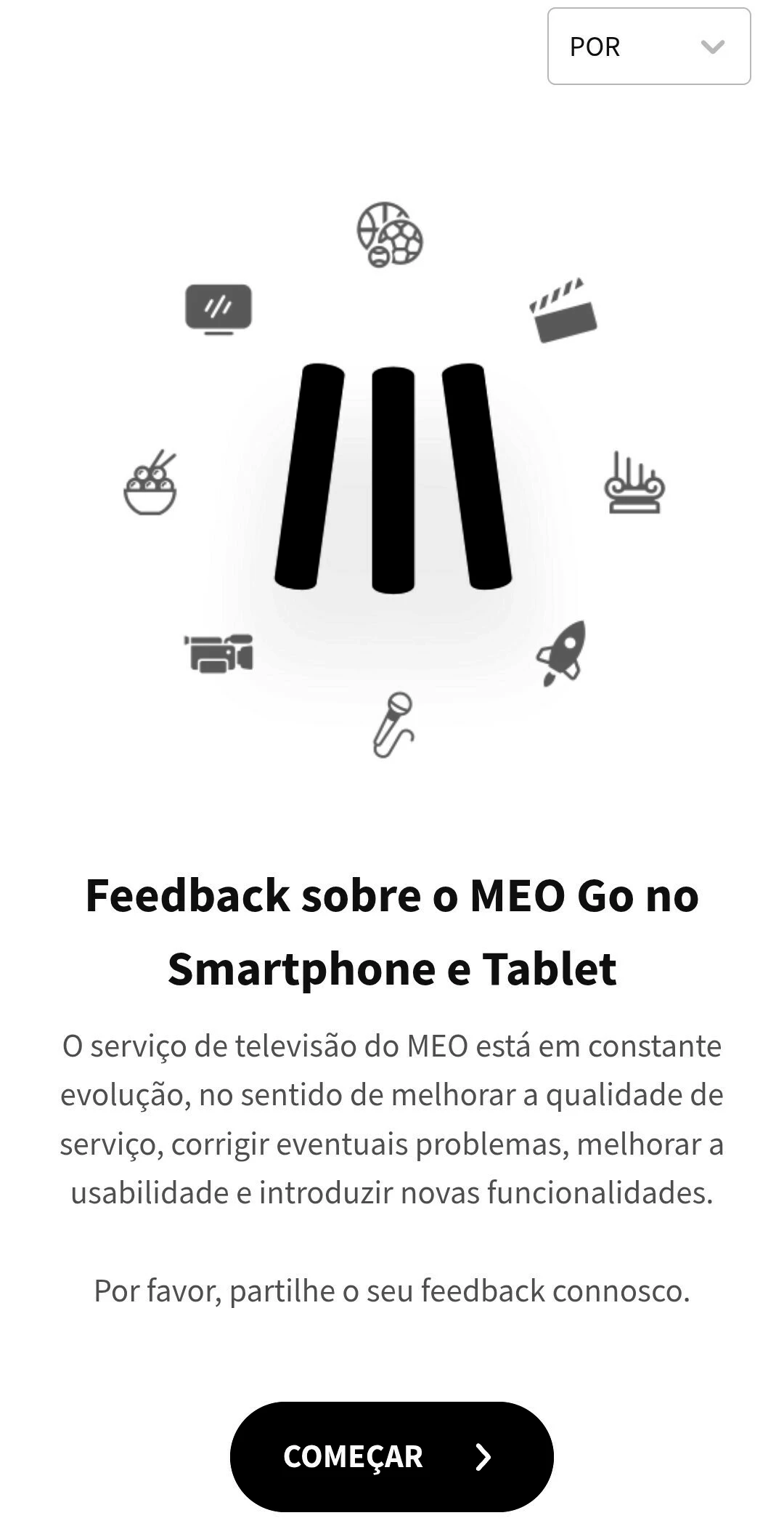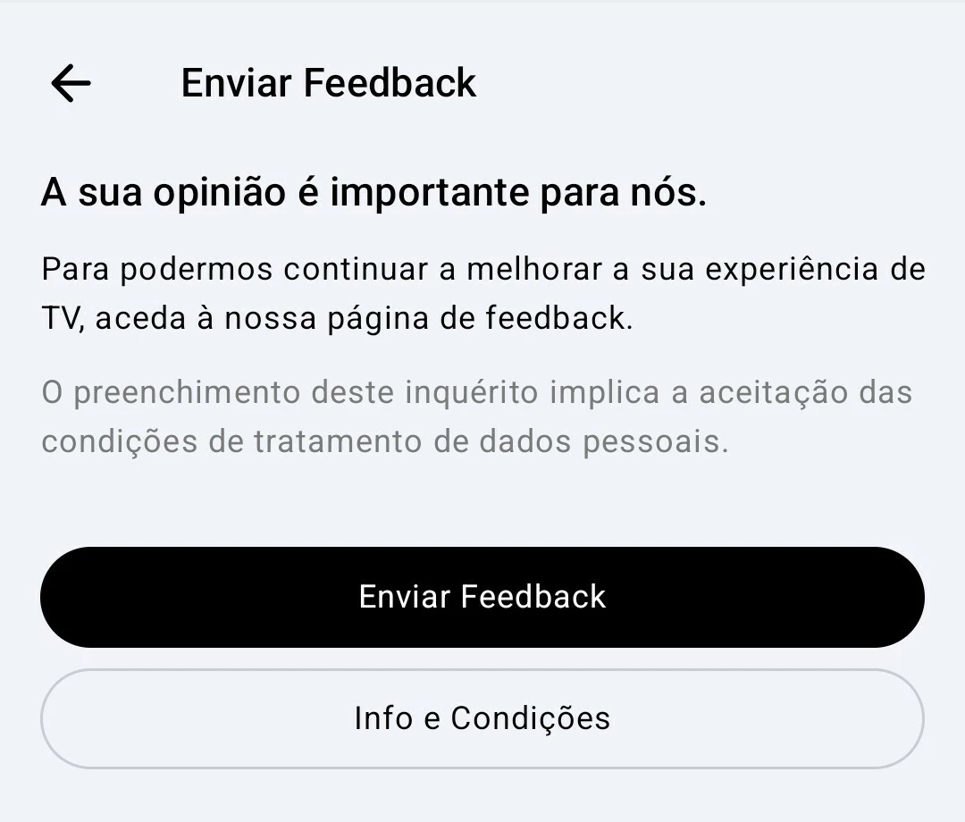 Também já é possível "Enviar Feedback", sobre a app MEO Go do Telemóvel e Tablet, através das Definições da app, tal como já existe para a app MEO para Android TV