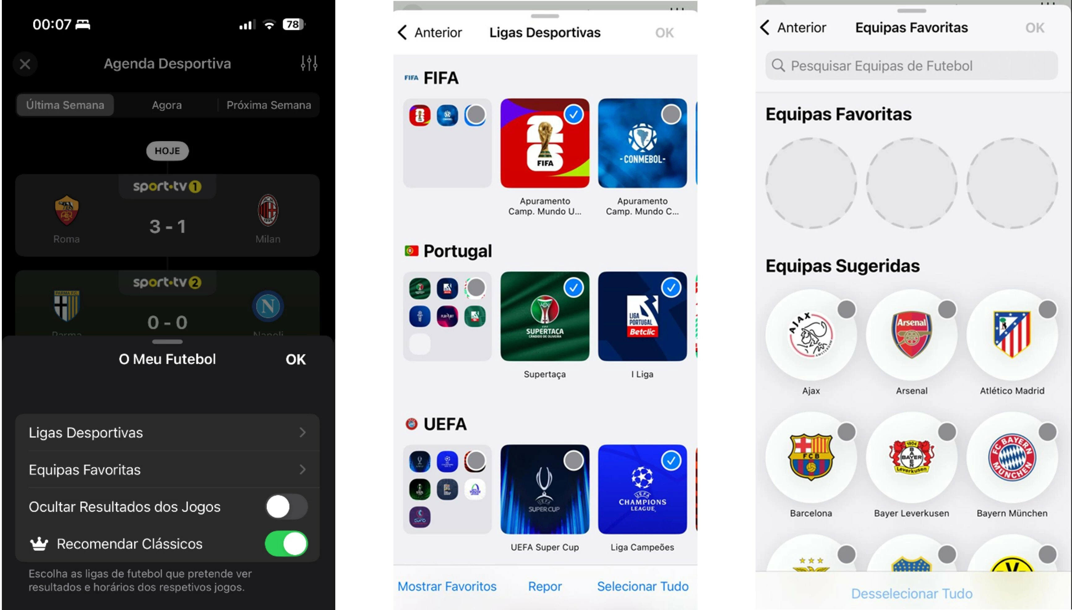 • Equipas favoritas: pode escolher as suas equipas favoritas de qualquer Liga