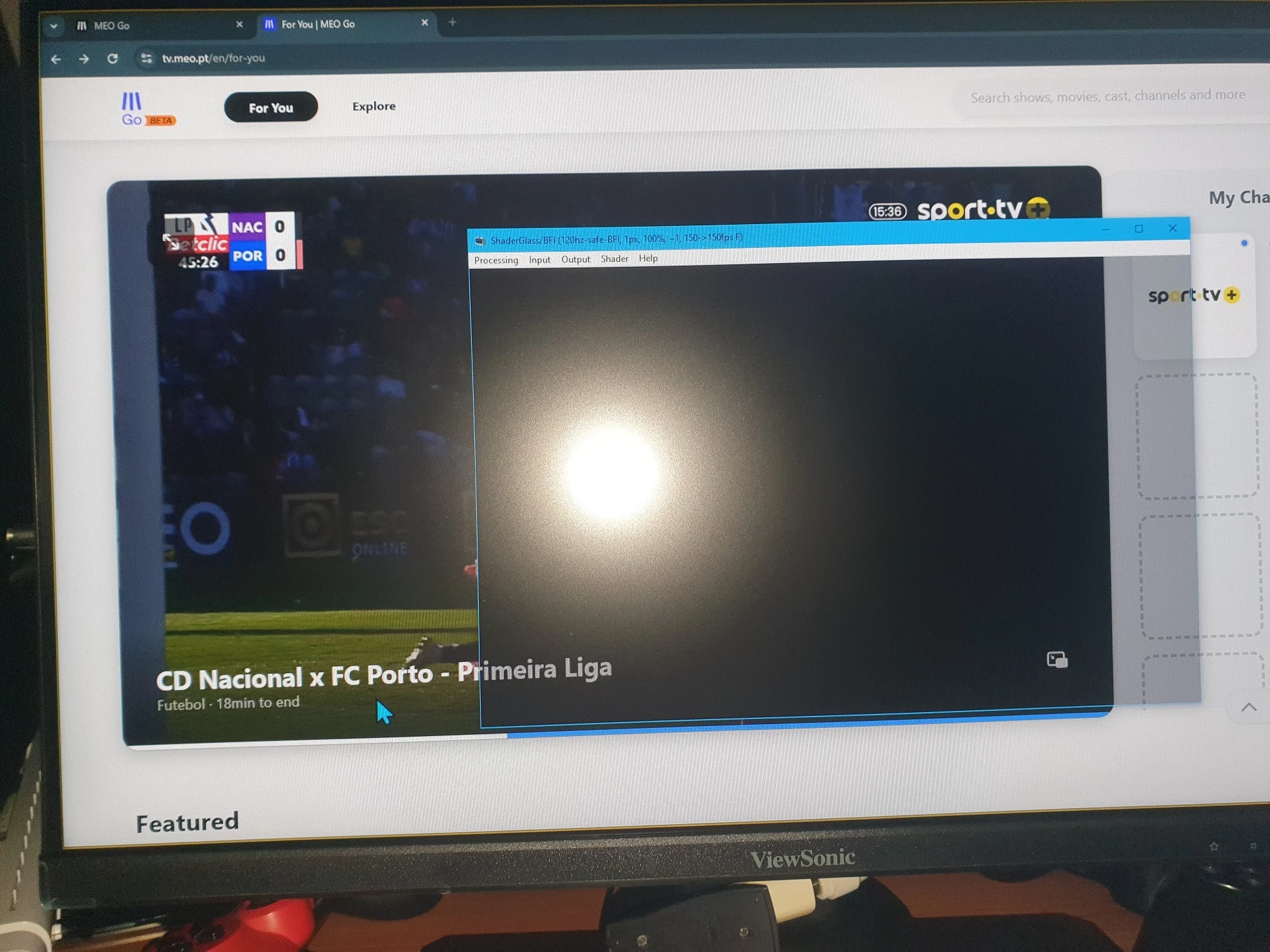 A ecrã fica em preto quando uso o programa de “ShaderGlass”!?! Mas o apoio de BFI (Black Frame Insertion (em inglês) = inserção do quadro preto (em português)) neste programa quase elimina o problema dos movimentos desfocados para competir a velha tecnologia de CRT (ver foto). 🙁