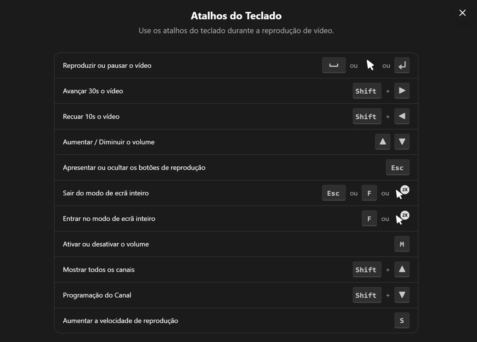 - Mudança imediata de canal pelas setas esquerda/direita do teclado, facilitando um zapping mais rápido.