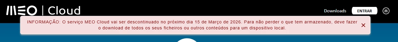 Mesmo que opte por voltar a aceder à sua conta, informamos desde já que o serviço MEO Cloud será descontinuado brevemente, o que comunicaremos oportunamente.