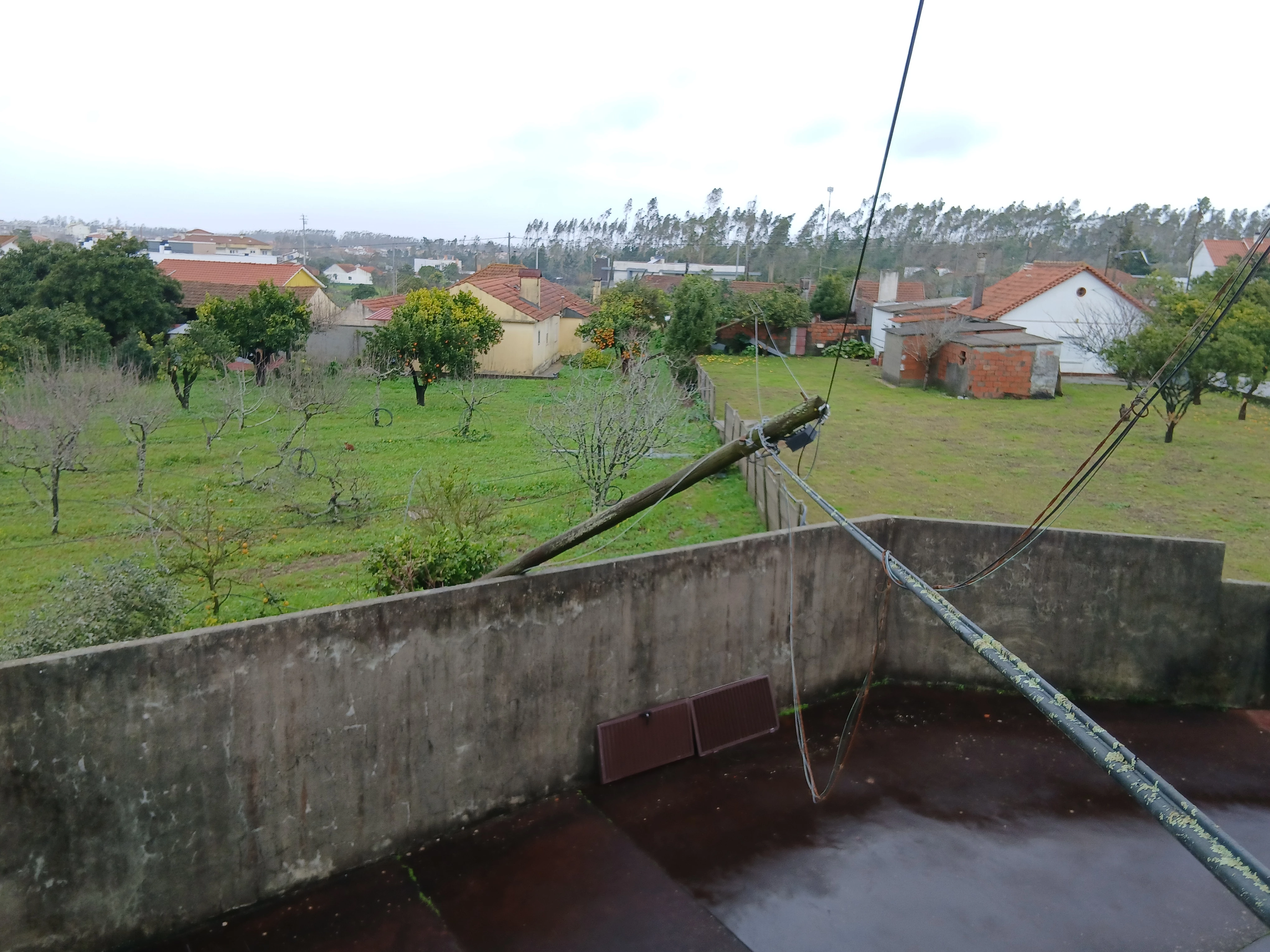 Tenho um poste caido no muro da habitação desde a tempestade KRISTIN. Já foi feito reporte e aberto processo com número 36GI01 no entanto ainda não foi resolvido. O poste está a fazer imensa força no muro que está em risco de colapsar. Agradeço uma breve resolução da situação. Obrigada