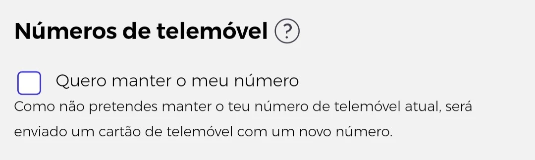 E depois questiona o número para esse novo tarifário, que pode escolher manter um número existente para esse novo tarifário ou um novo número, deixando sem selecionar a opção, e isso não influencia em nada o seu número de contacto.