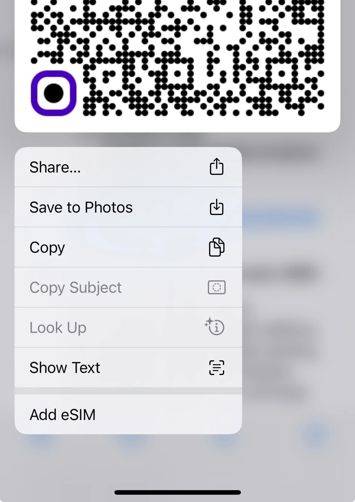 Para Adicionar o eSIM, é só ir nas Definições do seu Telemóvel, em "Adicionar eSIM", Escolha a Opção de "Digitalizar Código QR", e aí deverá existir uma Opção para Escolher uma Foto da Galeria, e Poderá Assim Escolher a Captura de Ecrã que Tirou com QR Code.