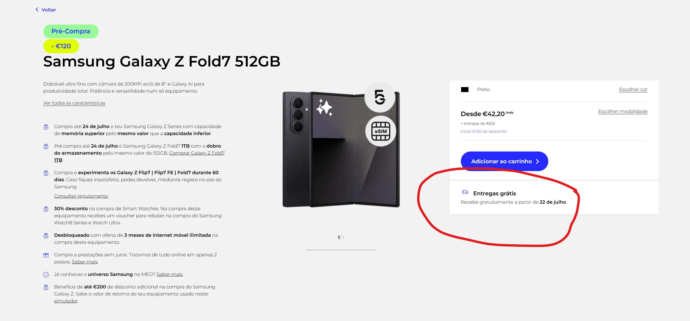 Boa tarde. Alguém sabe quando é que as lojas físicas da MEO vão começar a entregar os Samsung Fold 7 da pré-compra?