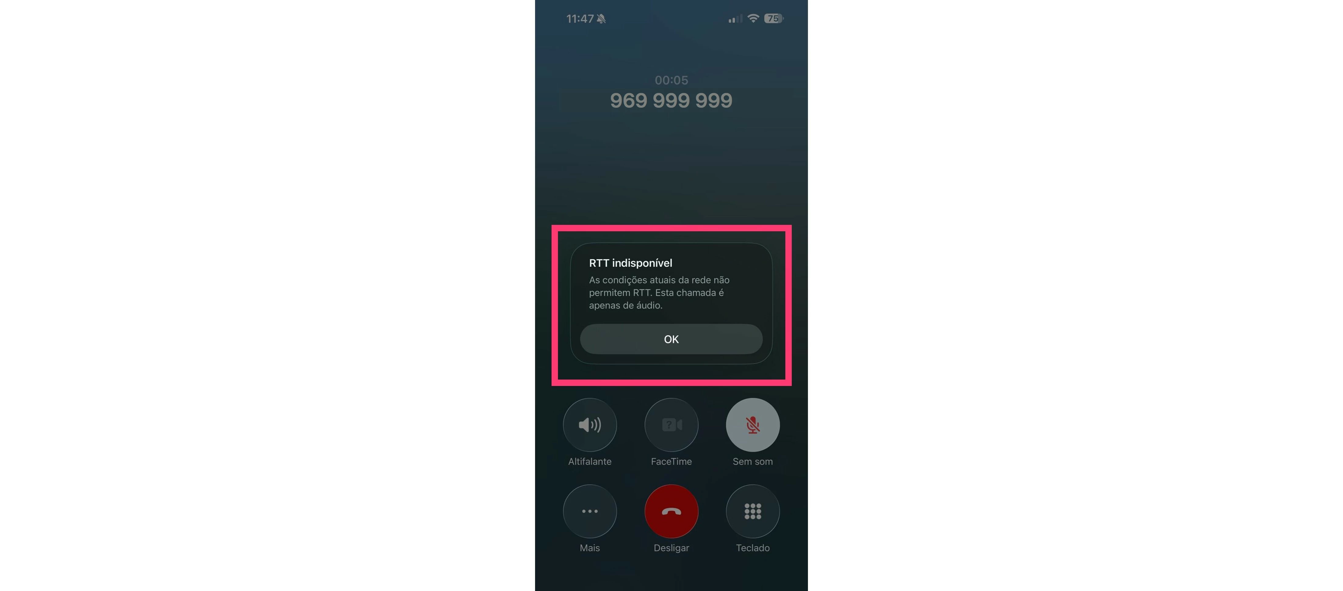 Caso o destinatário não suporte RTT, será apresentada uma mensagem informativa no ecrã.