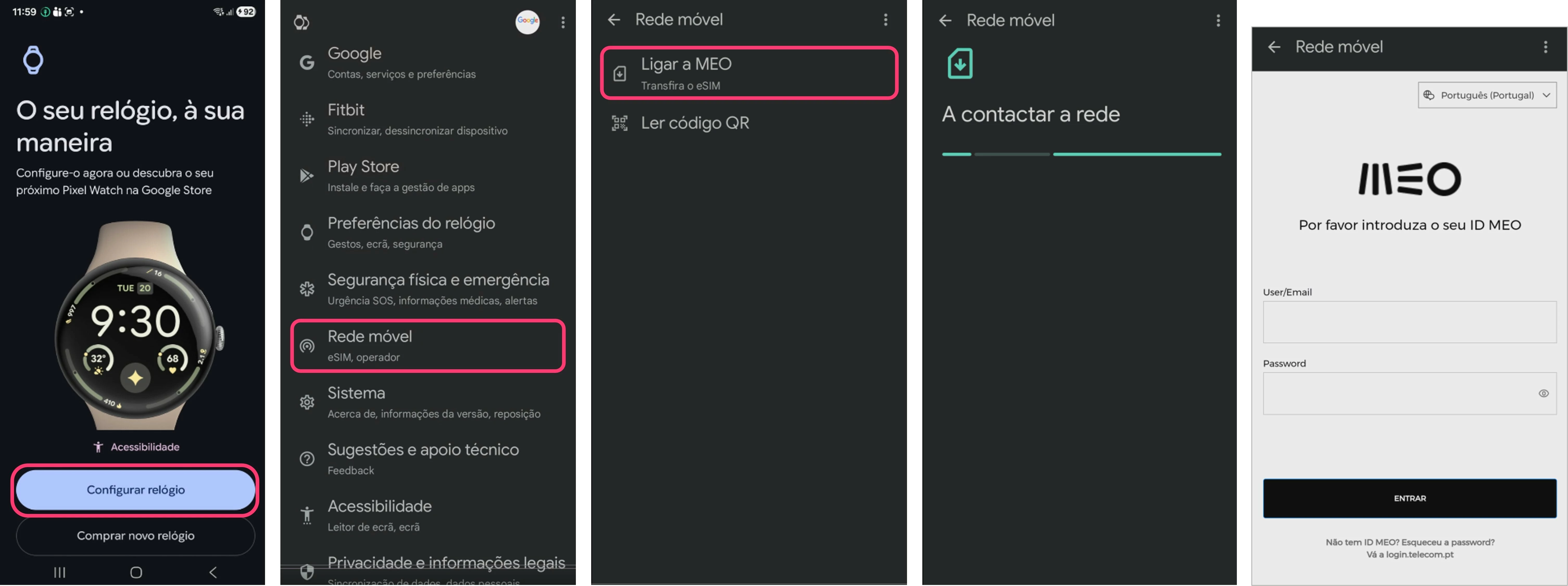 - Abra as Definições no seu smartphone, escolha “Rede móvel”, em seguida “Ligar a MEO” e inicie a configuração.