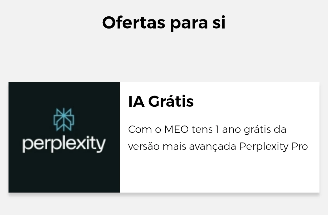 Boa tarde! Aderi recentemente ao MEO que inclui um ano de Perplexity Pro.