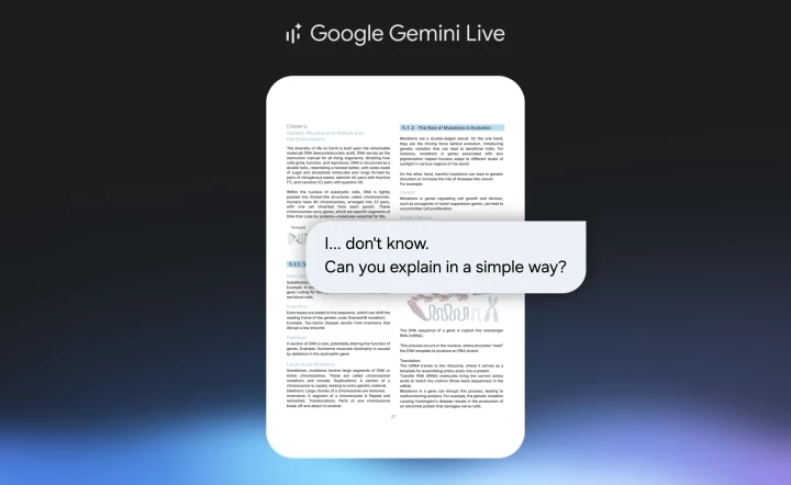 Tenha uma conversa fluida com o Gemini Live para debater ideias ou para se preparar para apresentações anexando imagens e obtendo respostas em tempo real que se adaptam ao seu estilo de conversa.