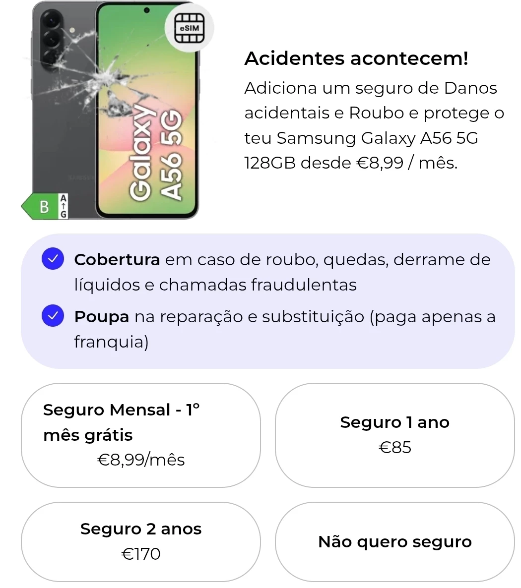 em quanto fica o seguro para seguro para Samsung Galaxy A56 5G 128GB