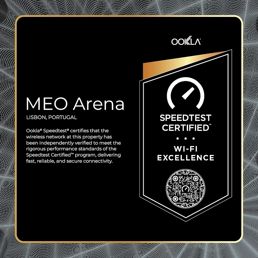 A maior sala da espetáculos do País recebeu o selo SpeedTest Certified da Ookla em que comprova a qualidade, fiabilidade e desempenho da rede WiFi. É a primeira arena do mundo a receber esta distinção!