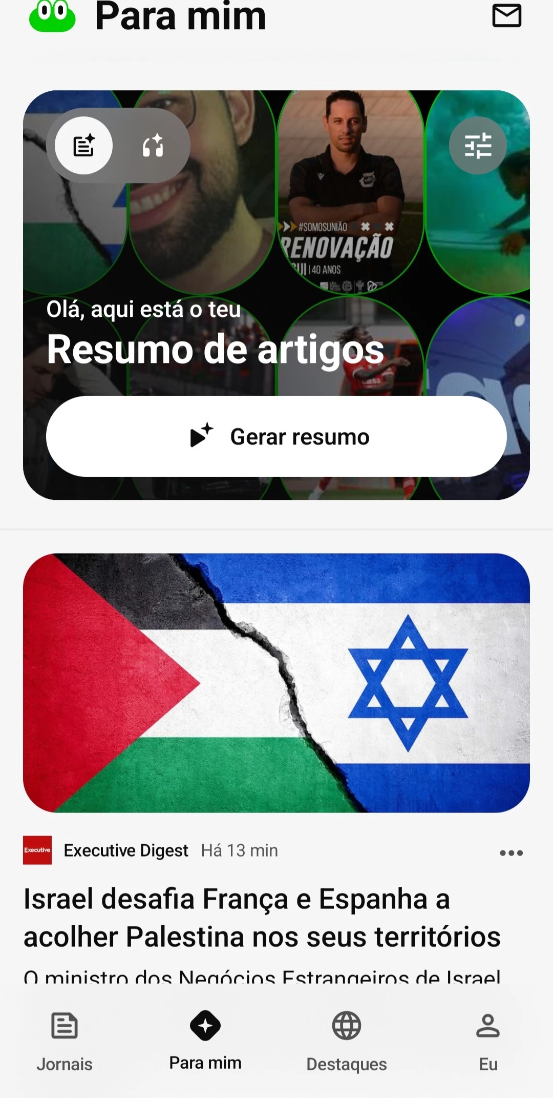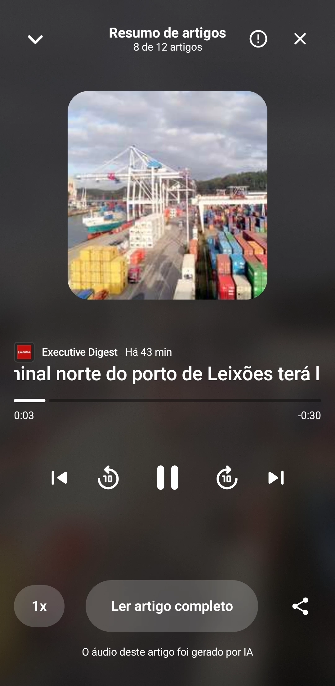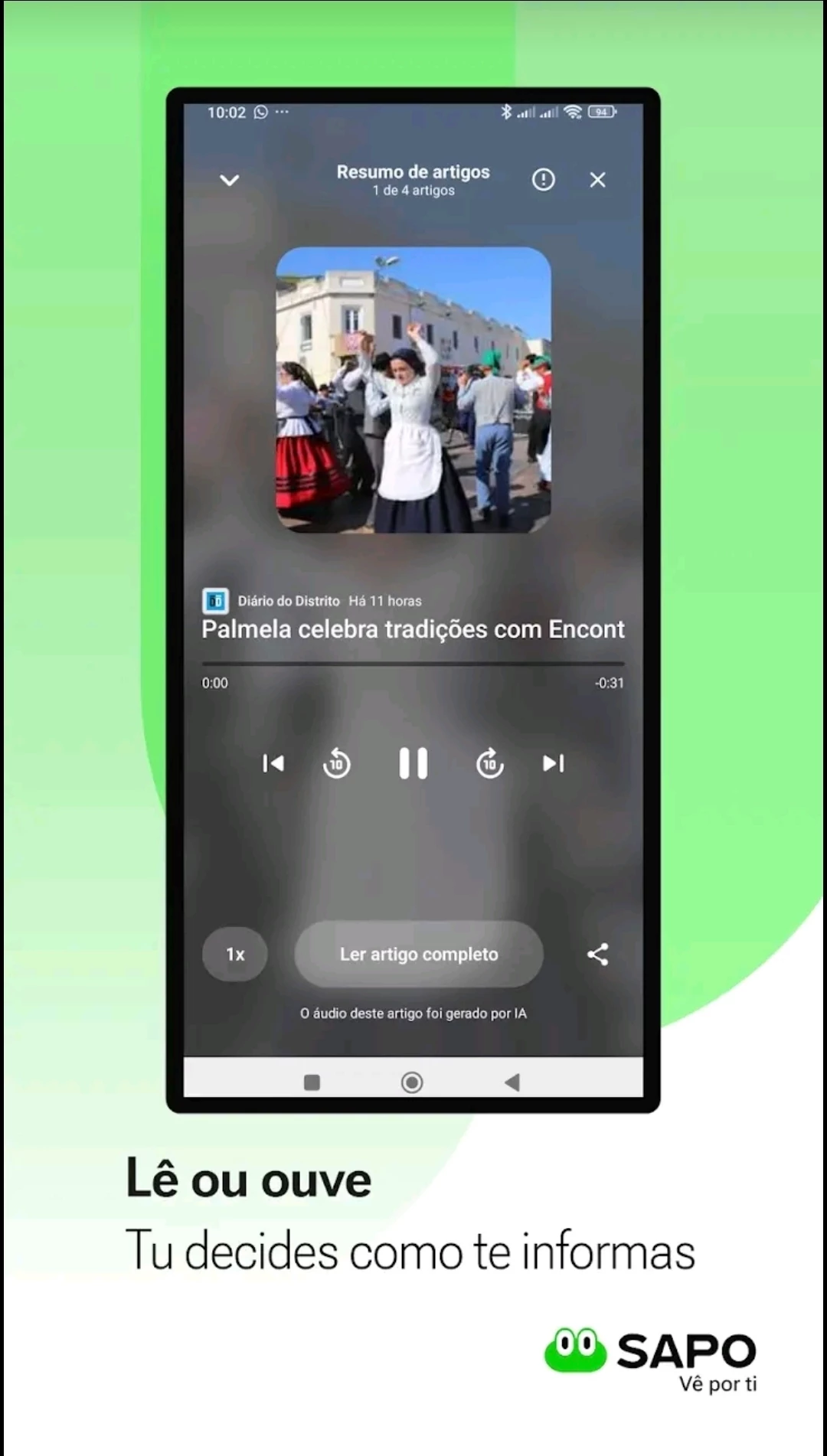 Os resumos com IA estão disponíveis tanto em texto, como áudio.