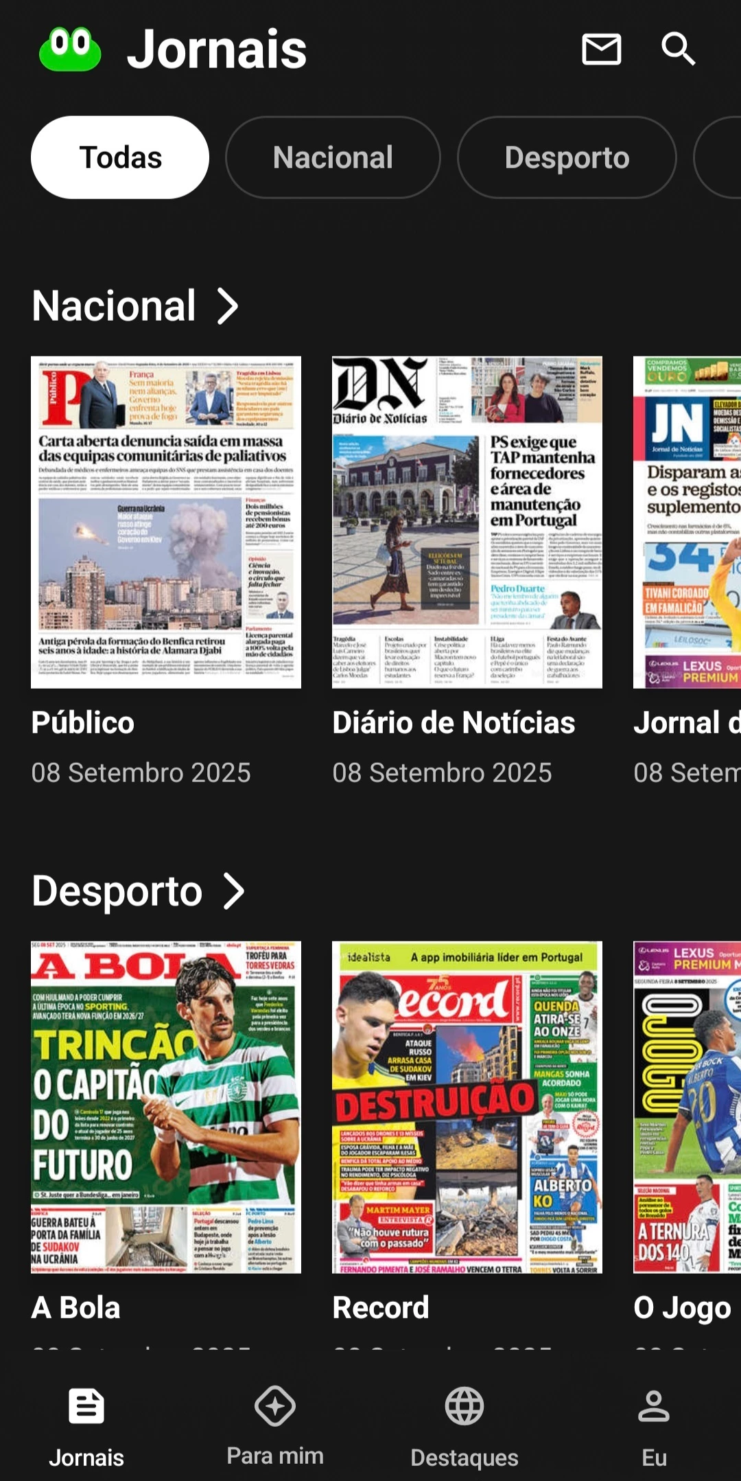 Fica aqui também capturas de ecrã da nova app SAPO que também está muito bem conseguida não so no design mas também nas novas funcionalidades de IA e Android Auto ou Carplay. Parabéns à equipa do SAPO!