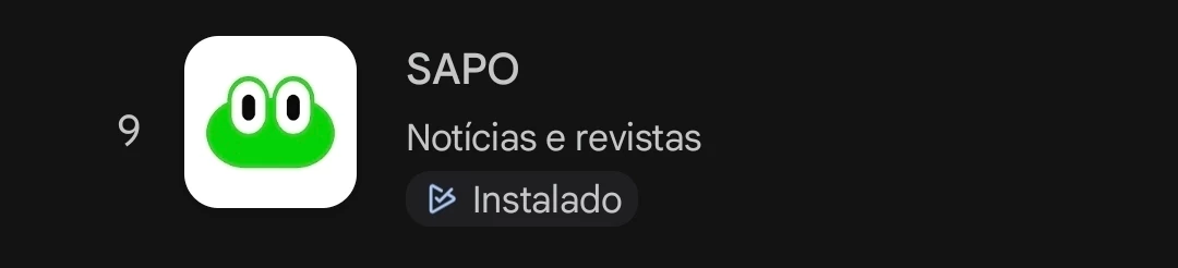 Parabéns ao SAPO! Está agora na 9° posição da tabela de classificação da Play Store ficando à frente de apps como TikTok, Instagram e MB Way. Foi um bom rebranding para o SAPO