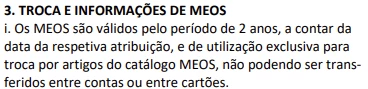 Por exemplo tenho um familiar, meu marido que não usa os pontos e ele queria mos dar para acumular com os meus e assim comprar um smartphone...mas como a burocracia da meo não deixa transferirmos pontos, acabamos por perder os pontos e não compramos nada… pelo menos outra operadora deixa fazermos isso… a Meo fica a perder vendas acumuladas com pontos e os clientes são penalizados com perdas de pontos porque não têm o suficiente para comprar o que gostam.