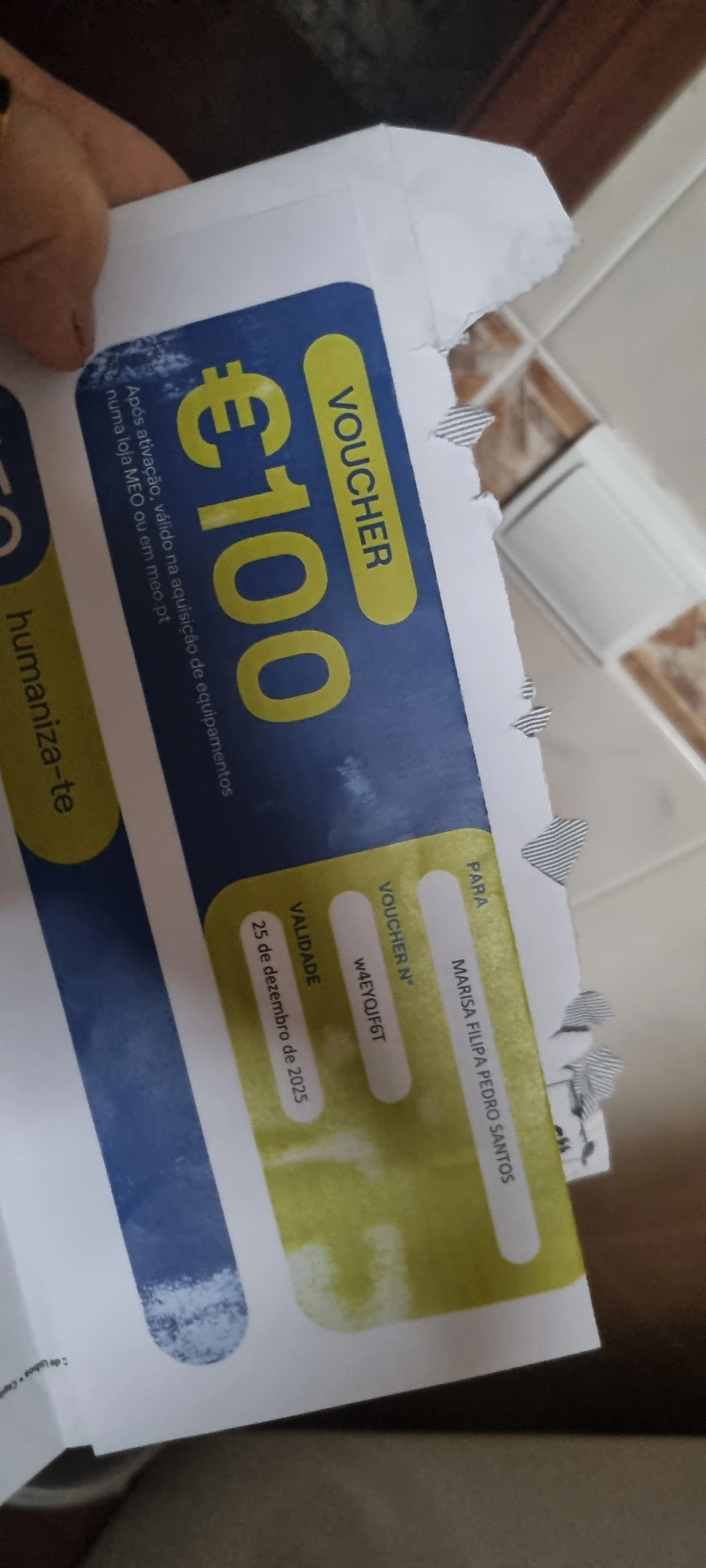 Recebi um voucher de 100€ para utilizar na loja MEO.Mas não estou a conseguir ativar, já tentei várias veres no my meo e dá sempre erro que não é possível ativar .