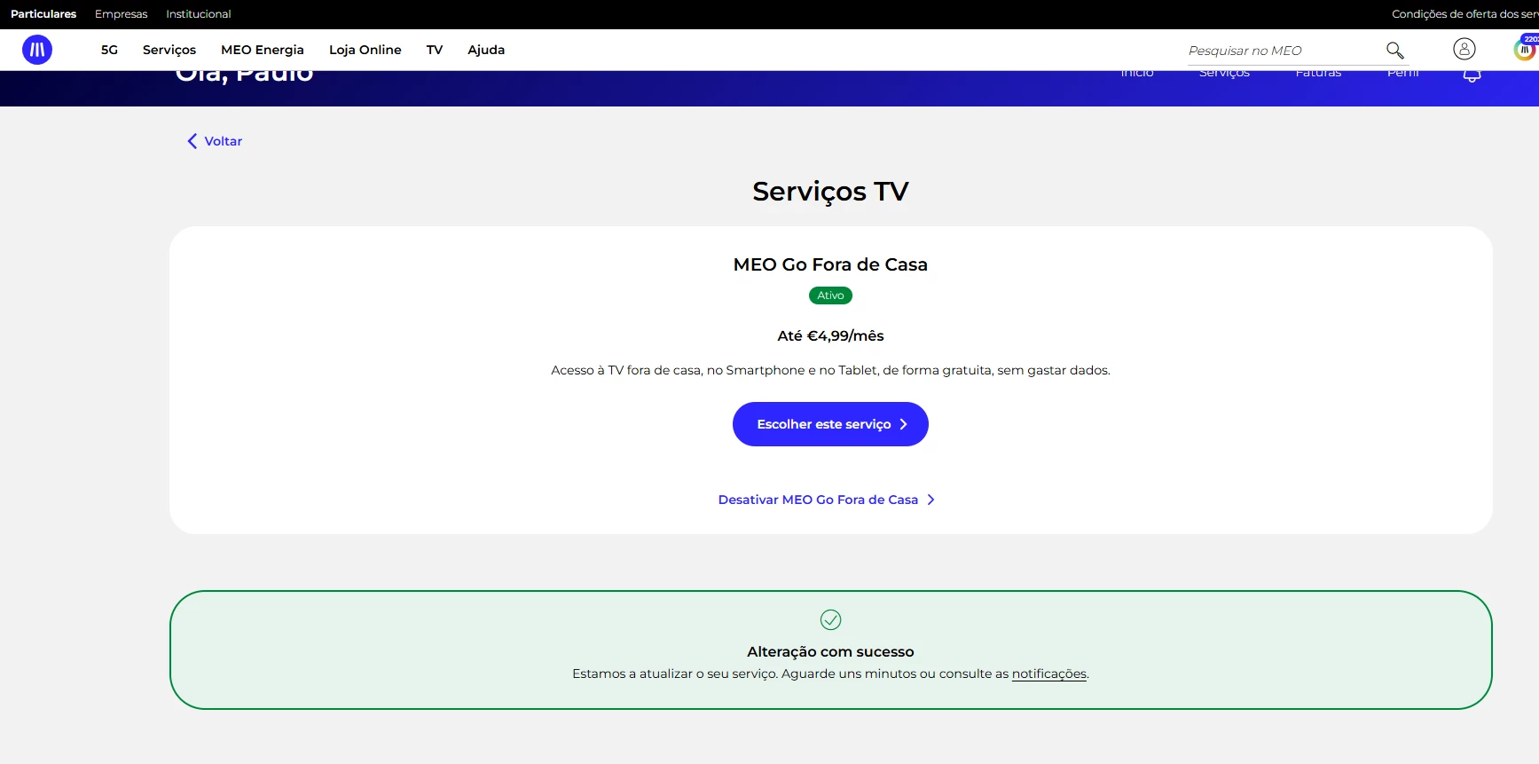 Cancelar MeoGo fora de casa