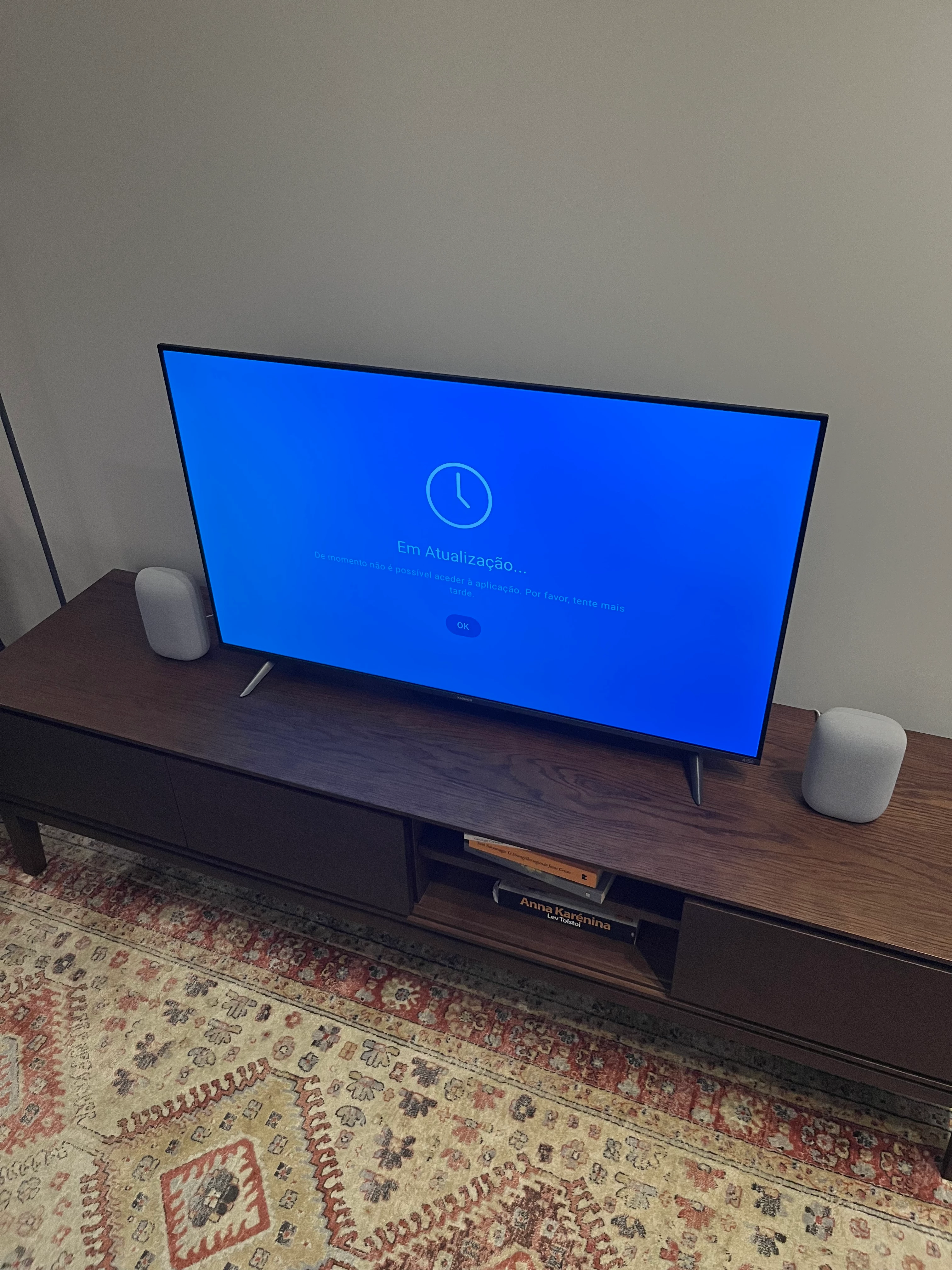 Tenho uma tv xiaomi com google tv e quando entro na app da meo aparece um aviso “em atualização” e não consigo passar desse ponto.
