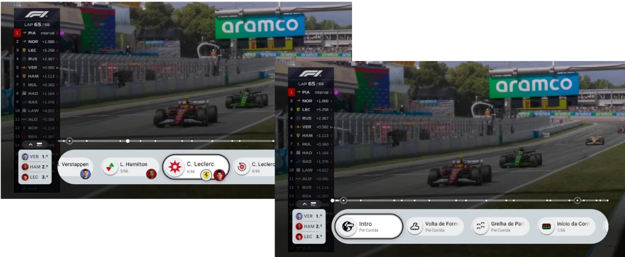 A nova Timeline F1 transforma uma corrida de 90 minutos numa experiência rápida, dinâmica, envolvente e premium de consumir Fórmula 1 no MEO: