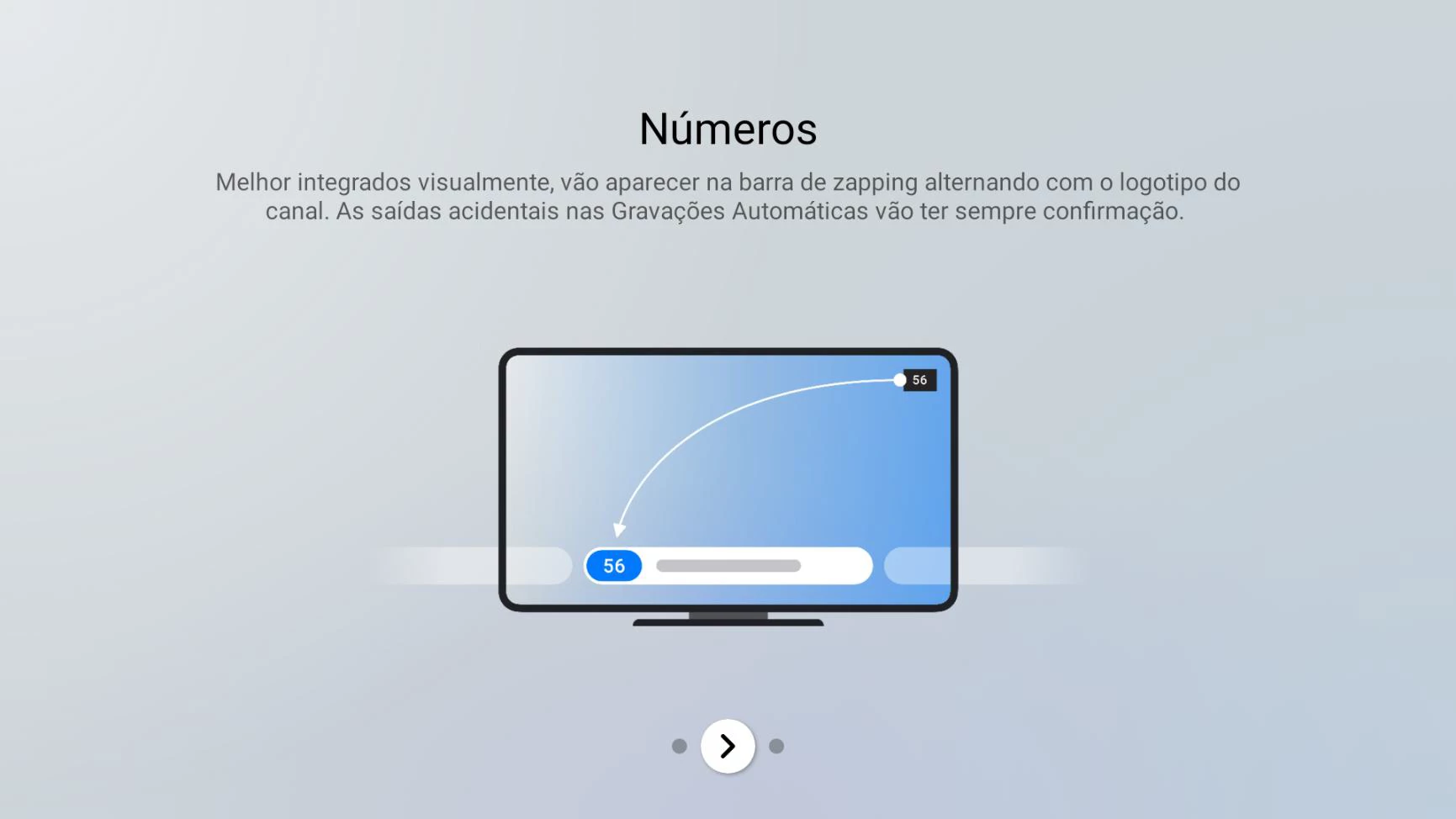 - Canais próximos na barra de zapping têm menor destaque, destacando o canal sintonizado.