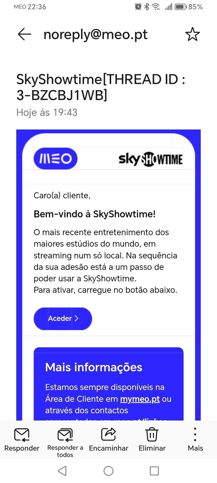 Pergunto a algum operador da Meo que me informe se a Meo está a fazer alguma campanha no canal de streaming skyshowtime.